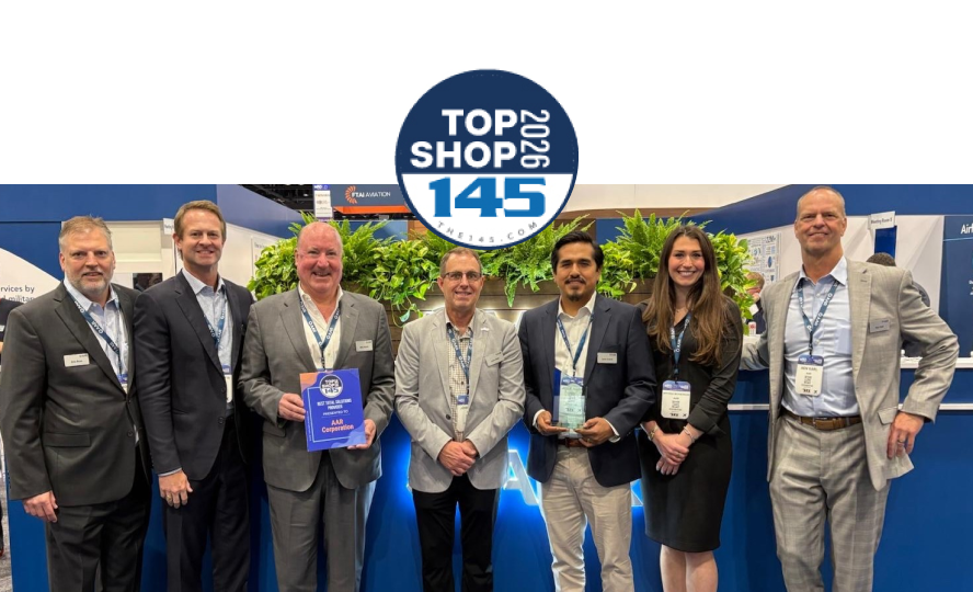 Wood Dale, Illinois — AAR CORP., a leading provider of aviation services to commercial and government operators, MROs, and OEMs, is proud to announce that it has been named a Top Shop for Best Total Solutions Provider by the 145. Top Shop awards are presented to maintenance, repair, and overhaul (MRO) facilities that strive to consistently deliver unmatched quality and seamless customer support. The Best Total Solutions Provider is awarded to the company that offers the best full suite of comprehensive, high-quality solutions and nose-to-tail life cycle services for its customers’ specific needs.